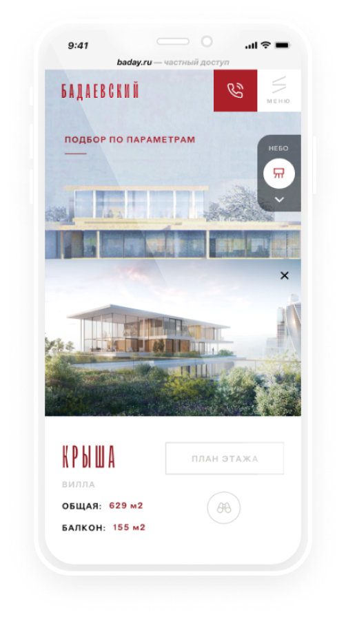 В моей концепции, сайт был полностью интерактивный: пользователь должен был погрузиться в новое пространство, погулять между колоннами, являющимися архитектурным сердцем проекта, а затем отправиться "на небо", чтобы выбрать там квартиру, посмотреть вид из окна, планировку и так далее.